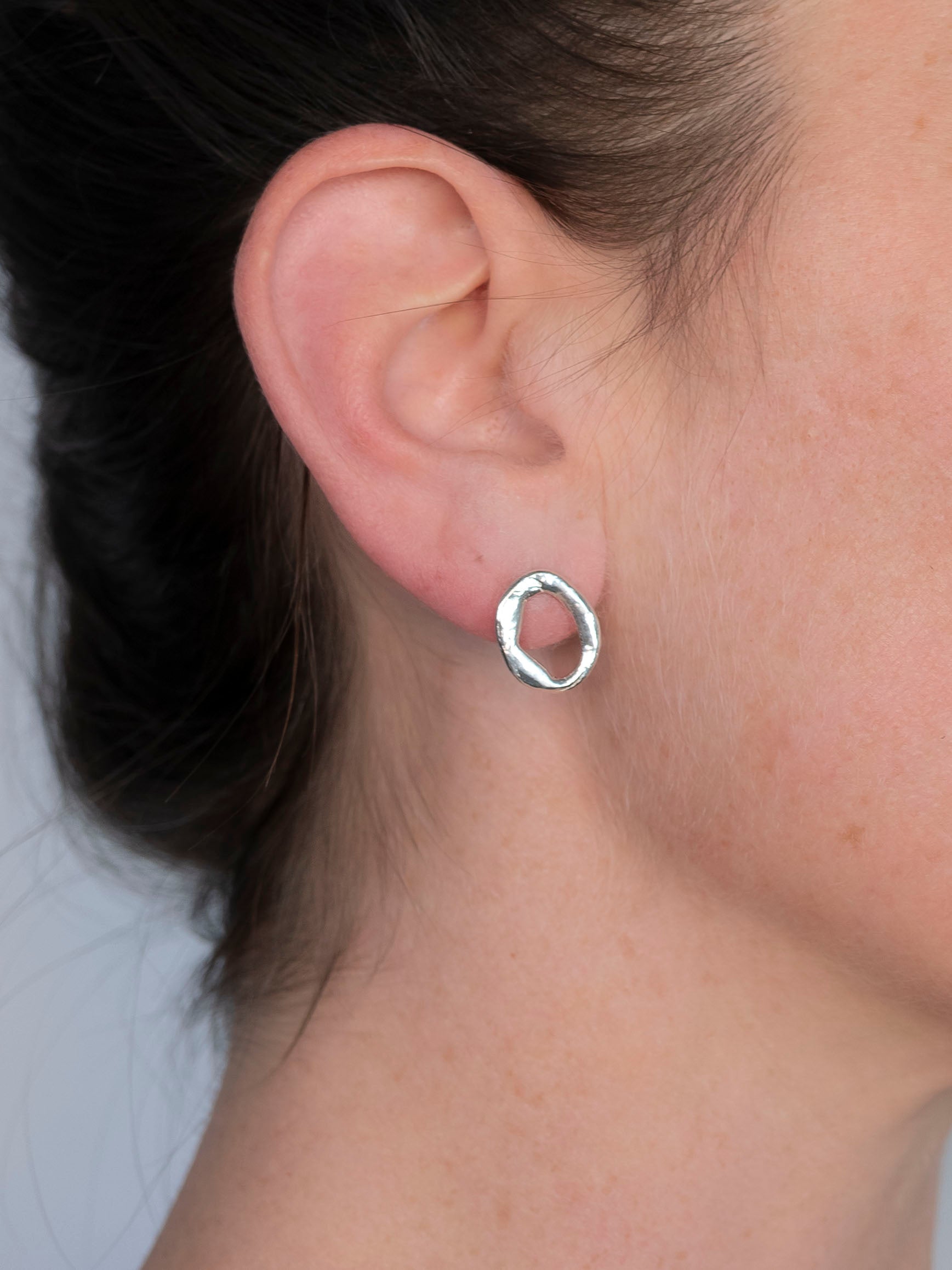A more sculptural take on the loop hoop, formed in solid sterling silver. Dimensional, intentional, and designed to hold visual interest from every angle. A statement earring that still works for daily wear.