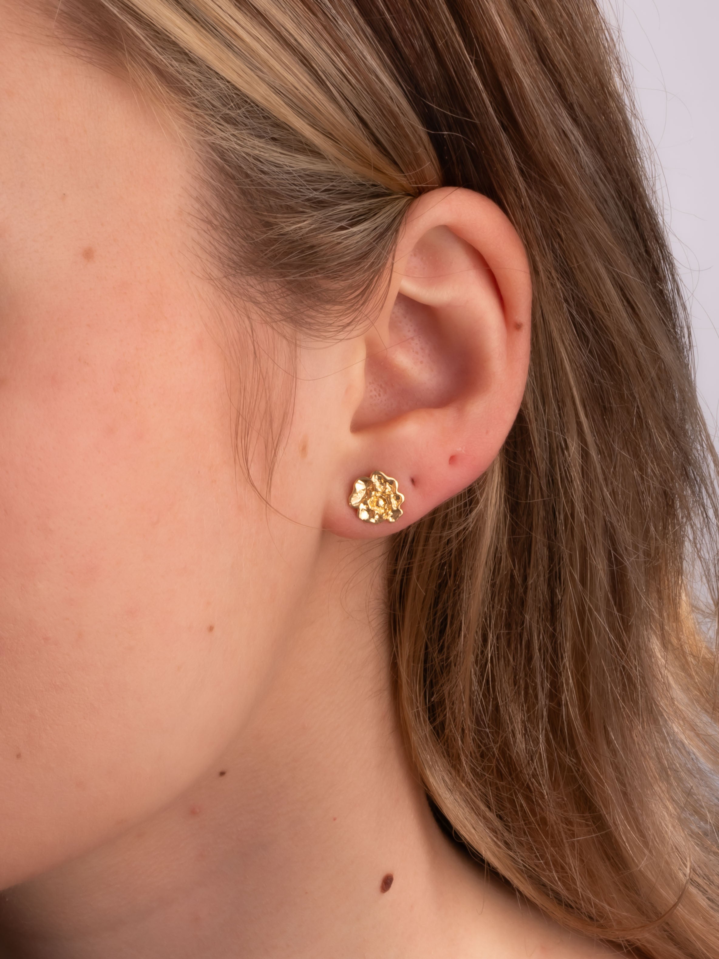 Mini Flower Studs available in solid sterling silver, or brass with a thick 14k gold plating.