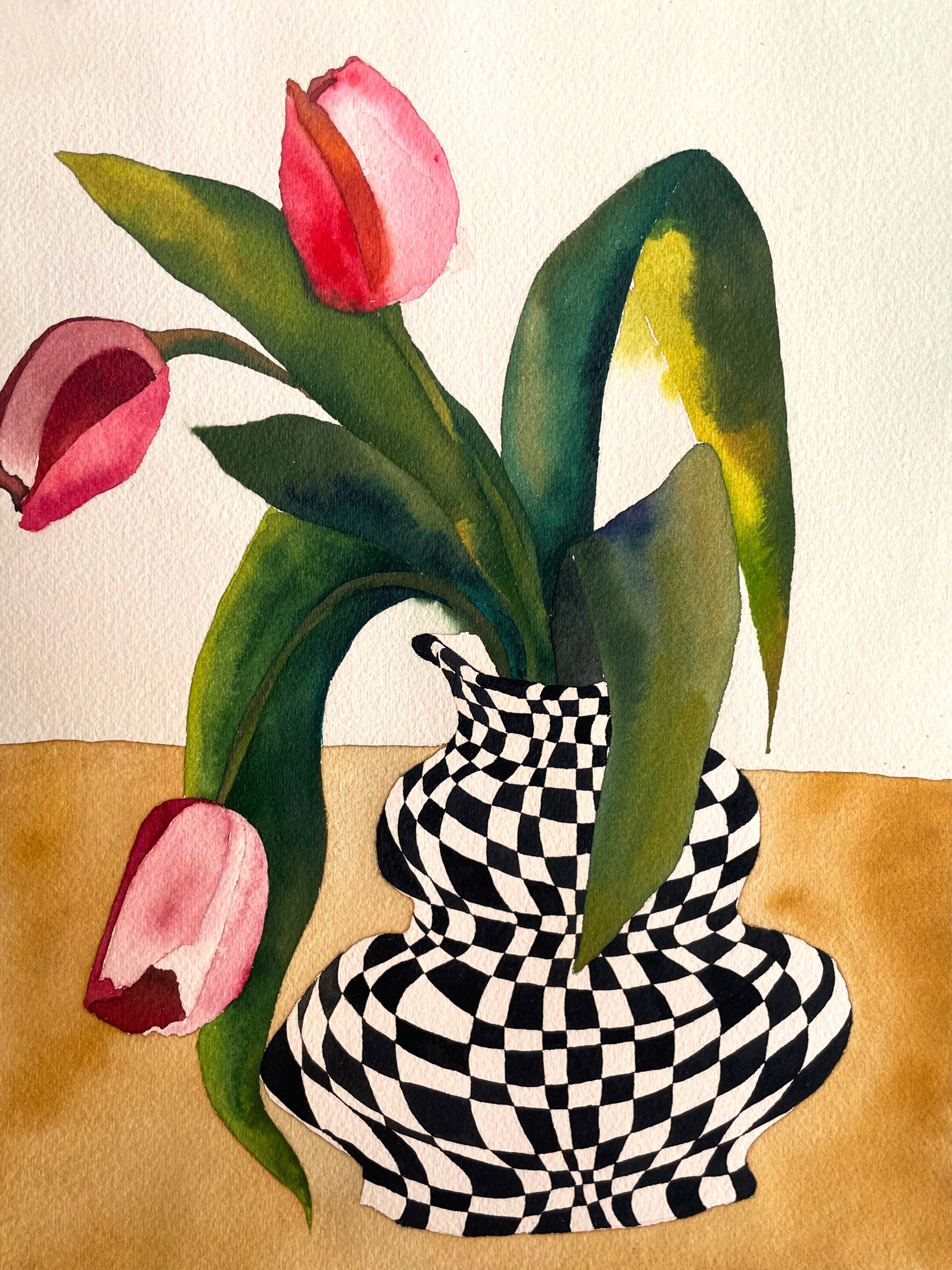 11x14 Watercolor painting of pink tulips on Arches paper.