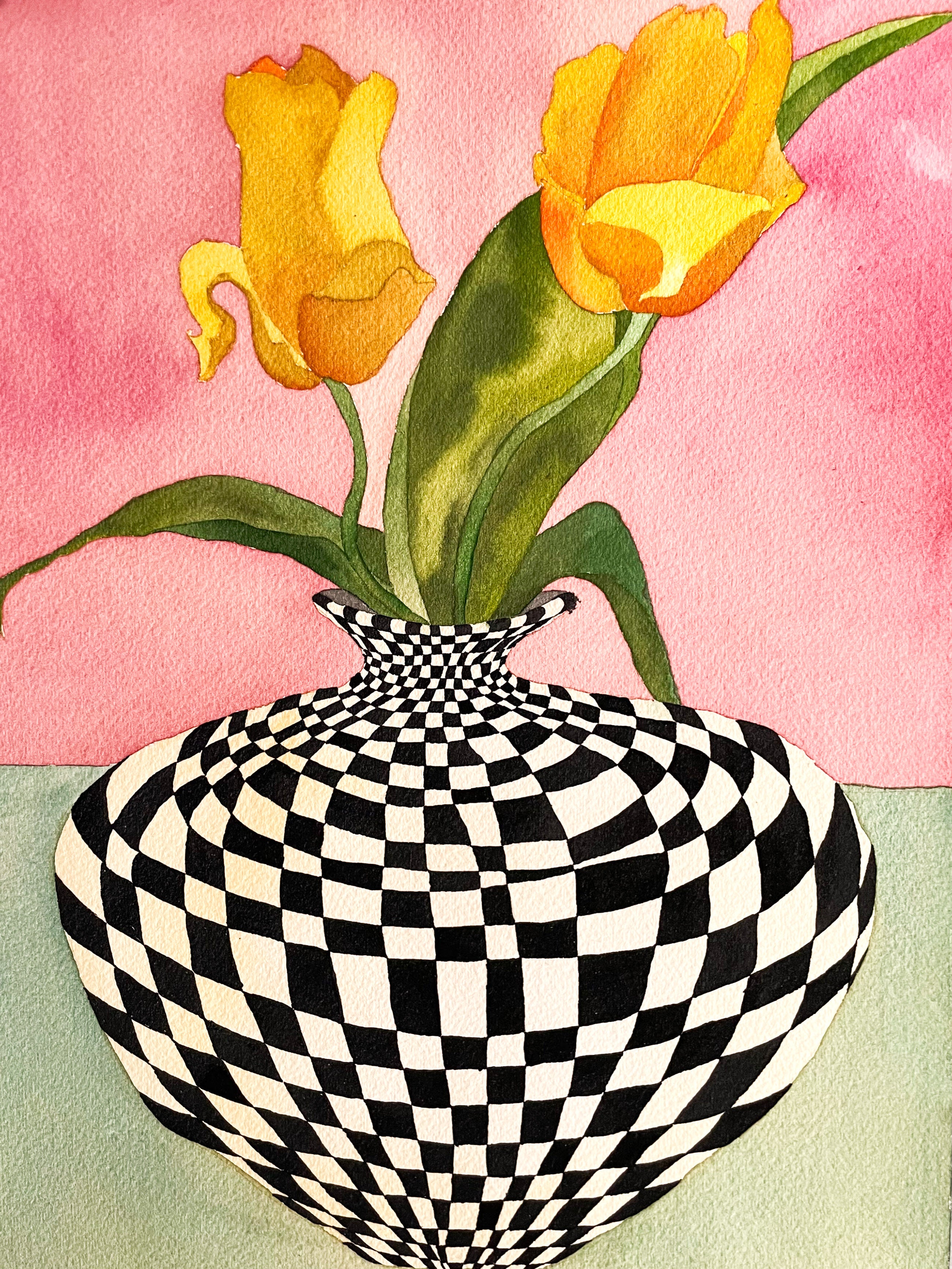 11x14 Watercolor painting of yellow tulips on Arches paper.