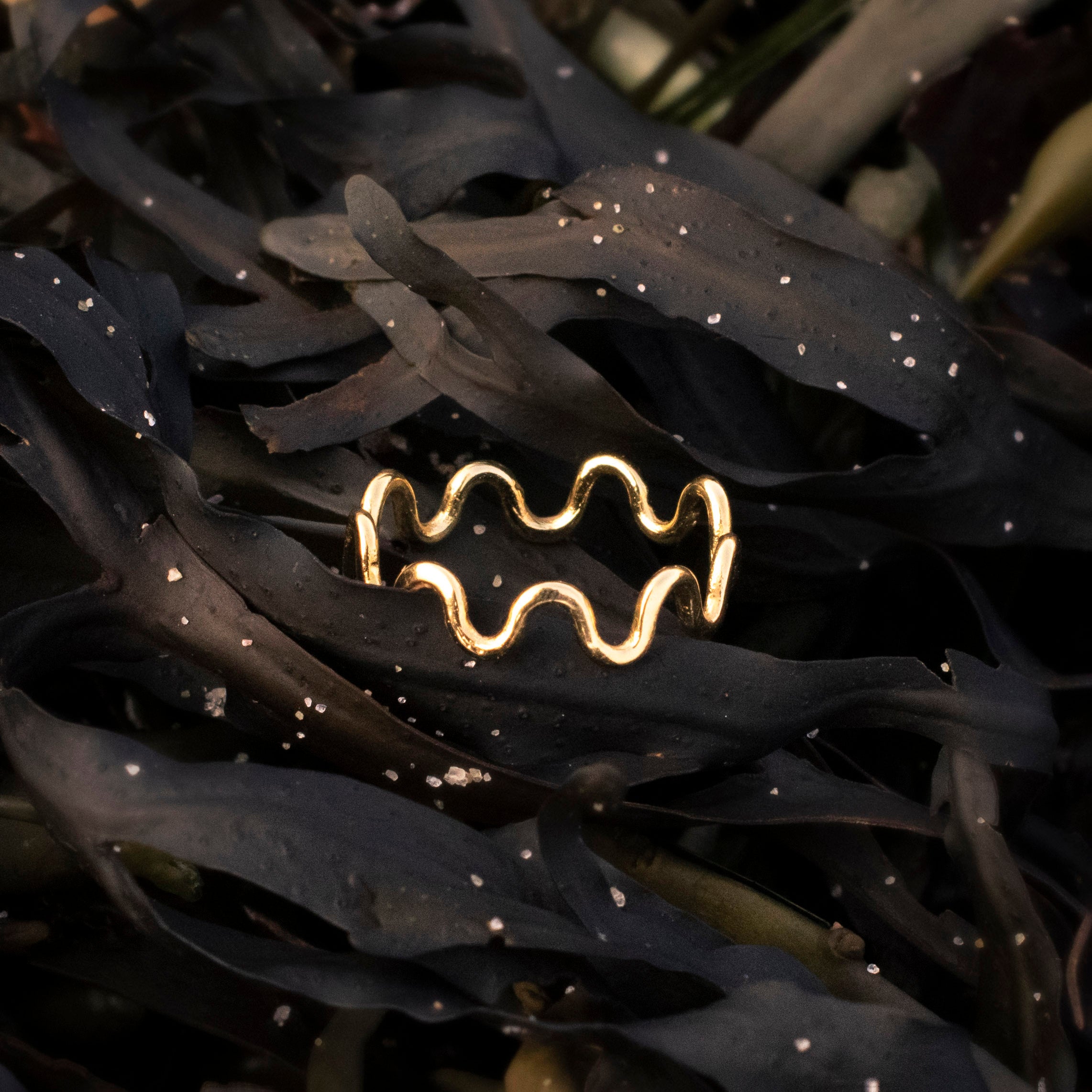 High frequency curvy ring sculpted from solid sterling silver or 14k gold fill.